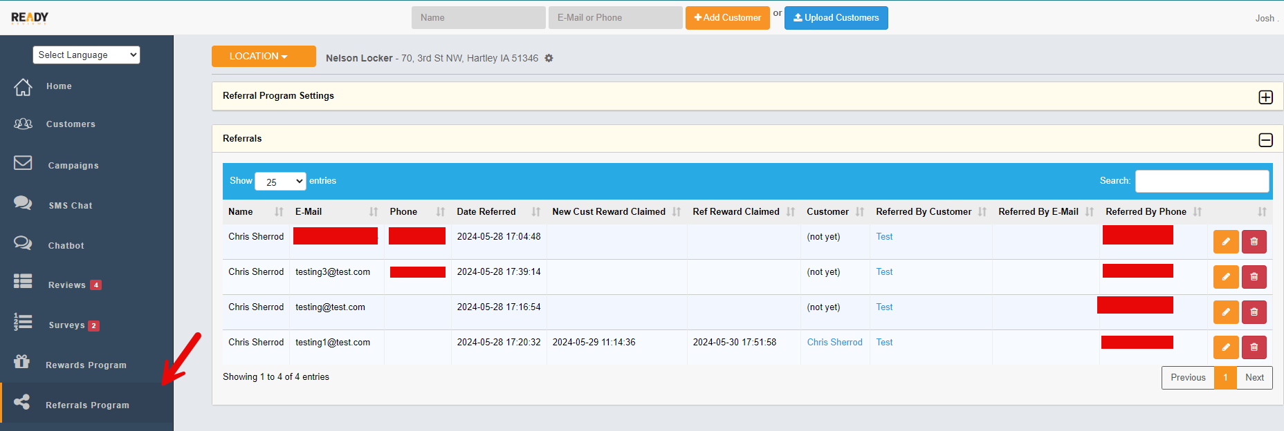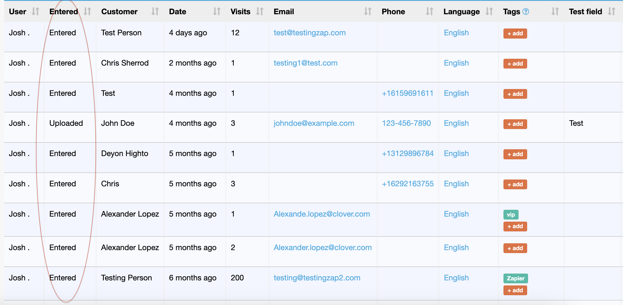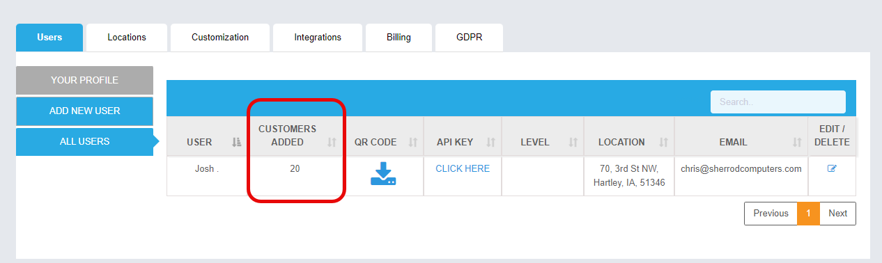6. Updated the date in the customer list of a business' back office to show the most recent visit rather than the date of their first visit. This way, if a customer is entered twice but they did not leave a review, the system will show their most recent visit and allow you to send a customer request. This also helps prevent duplicate entries from being added or entries being ignored and a business owner not understanding why it is being ignored.
