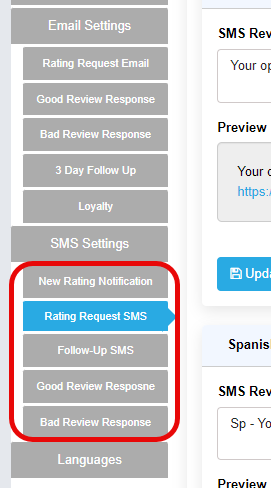 2. Businesses can enable SMS follow-ups for reviews, similar to how they can for email requests. Businesses can also set up SMS responses for review requests that are sent via SMS. These are in the settings area of the business' back office.