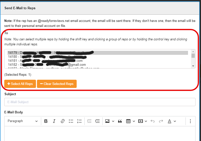 3. VARS and Grandfathered Vars can now mass email all reps or individual reps at a time