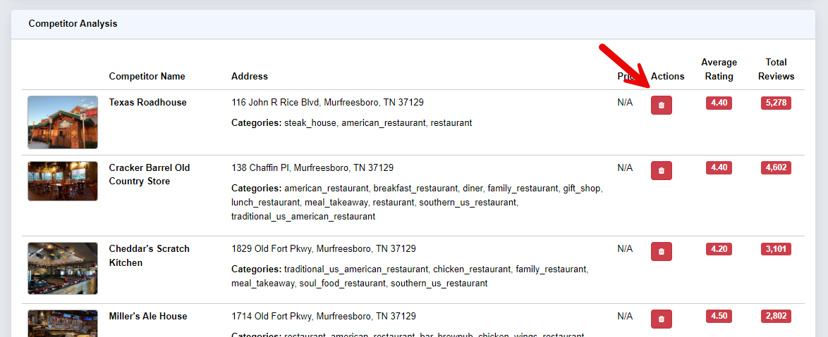 1. For VARs and/or reps who create business reports, you can now mark any competitors in the listing as deleted if you feel they are not appropriate competitors to include in the list. NOTE: This can only be done by the original person who initially created the report.