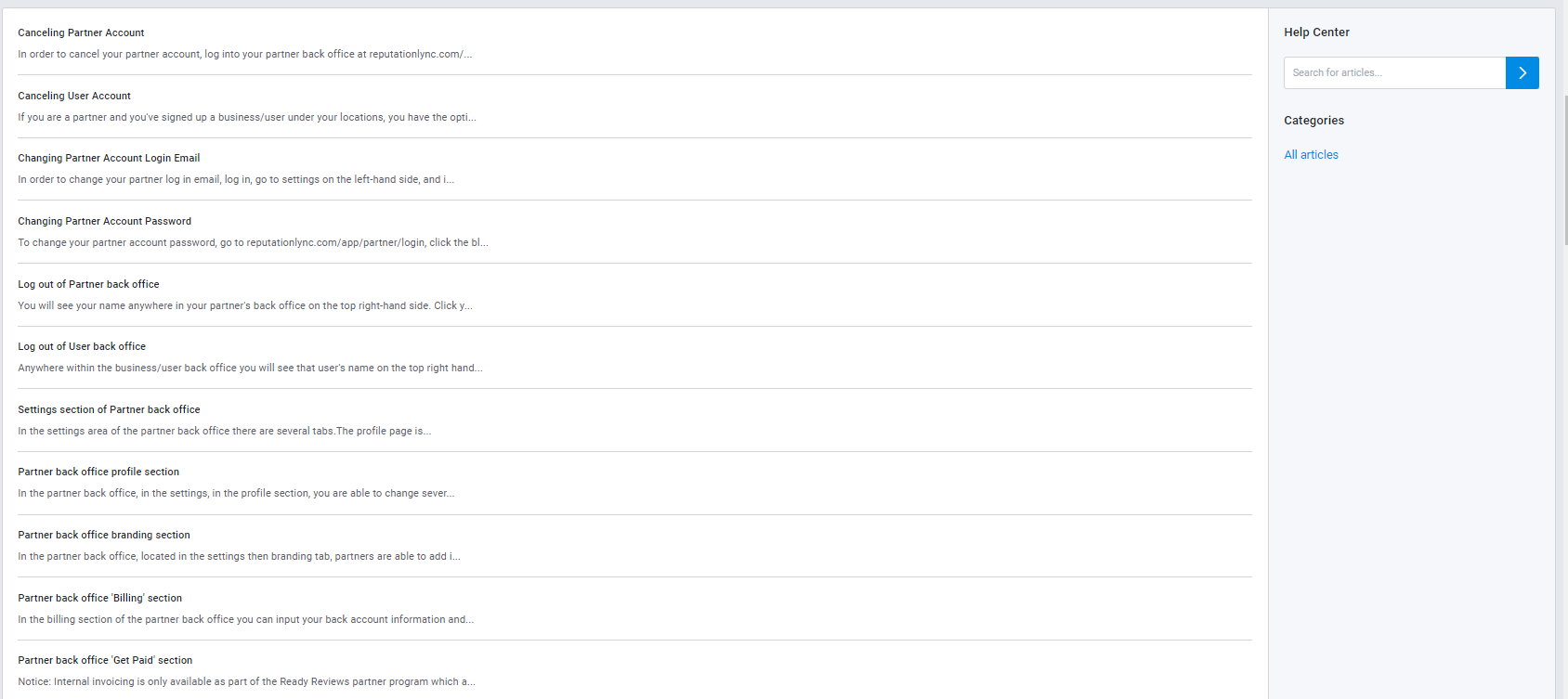 5. New help center featuring articles about Wombot's features located in the 'help tab' of partner back offices.