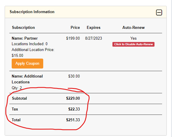 1. Sales tax applied to partner back office for Ready Reviews Launch