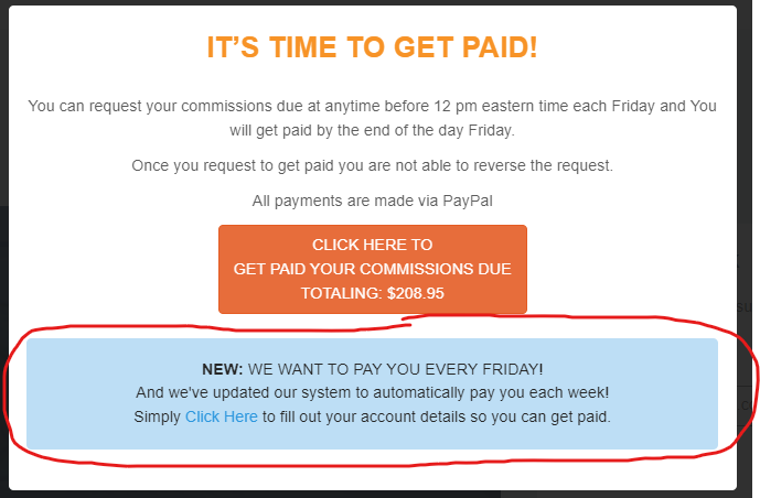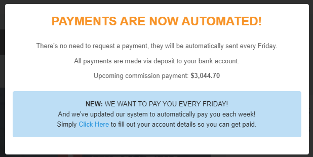 1. Updated the 'get paid' button to show information that commissions payments are now automated