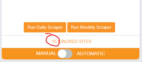 In the user portal, if logged in as an admin, in the active reputation tracker tab to the left of the screen, under the new run daily/monthly scraper, there is a counter of how many review sites have been ignored so partners can check and have the option to add/activate that website’s review site to the list along with Google.
