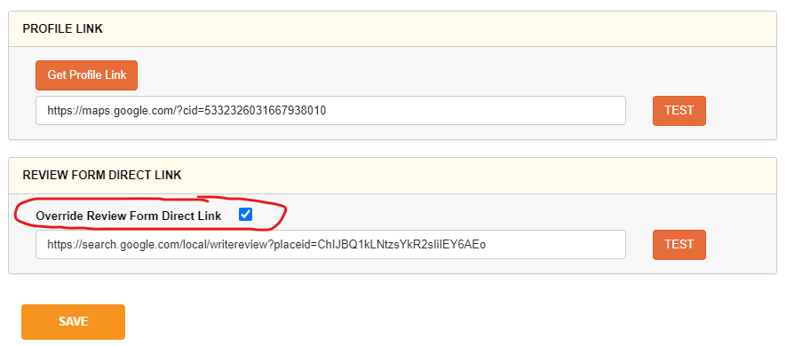 2. Added the ability to override the review form direct link: When enabled, the user can enter a new review form direct link and our system won't change it with the auto-generated one later.