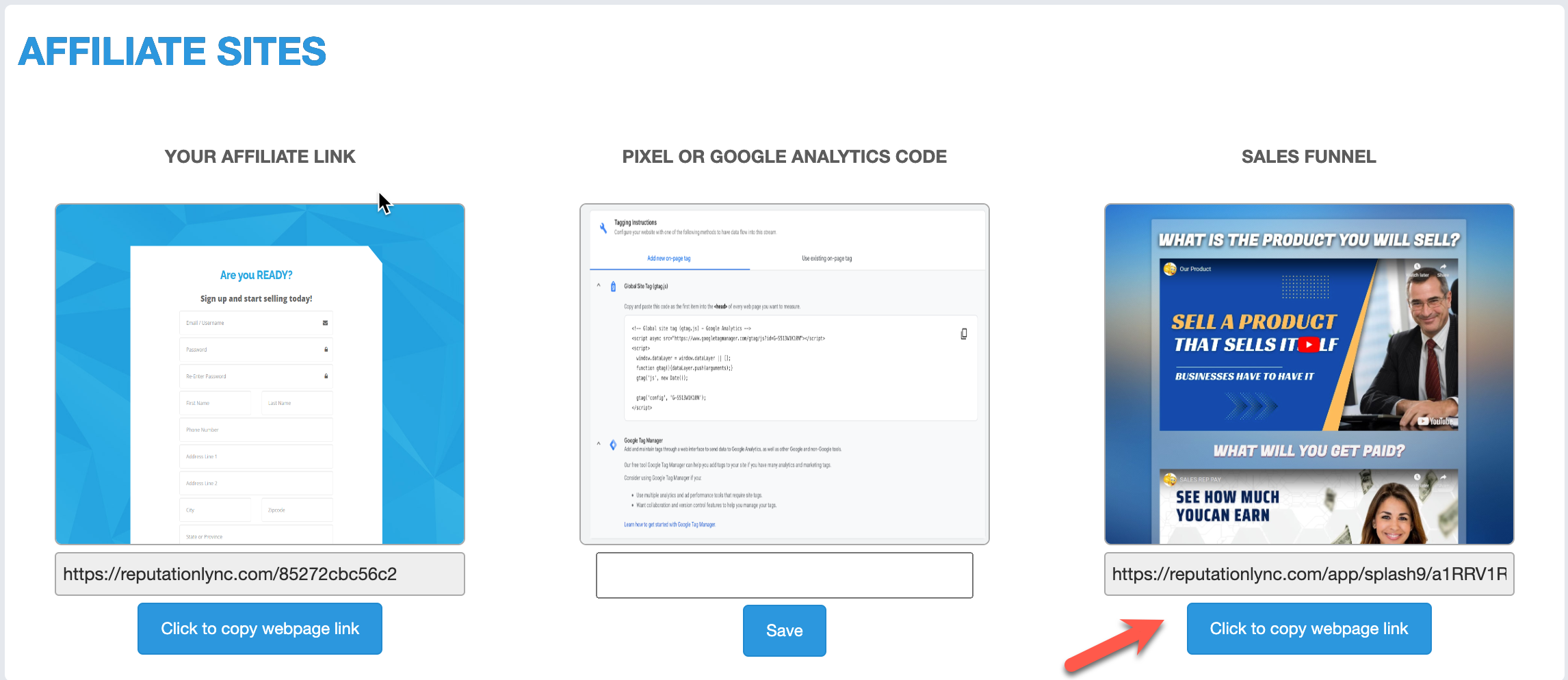 11. New sales funnel for signing up sales reps: reputationlync.com/app/sales/a...