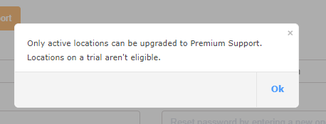 10. Premium support options or locations are only available to paying locations, not free trials.