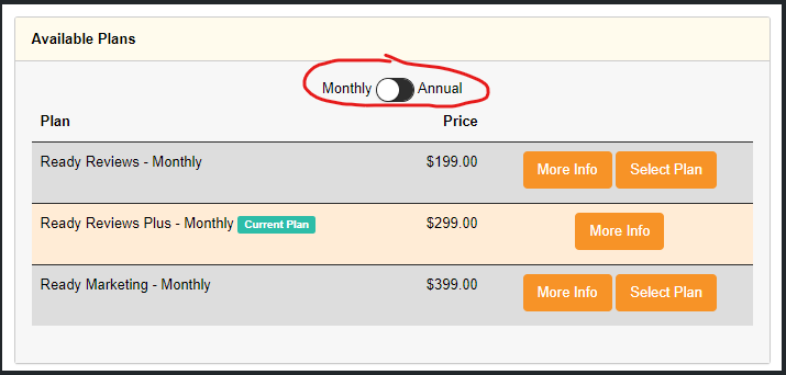 For direct billing (internal invoiced) users, we've implemented a monthly/annual toggle to keep the screen easier to view for the users.
